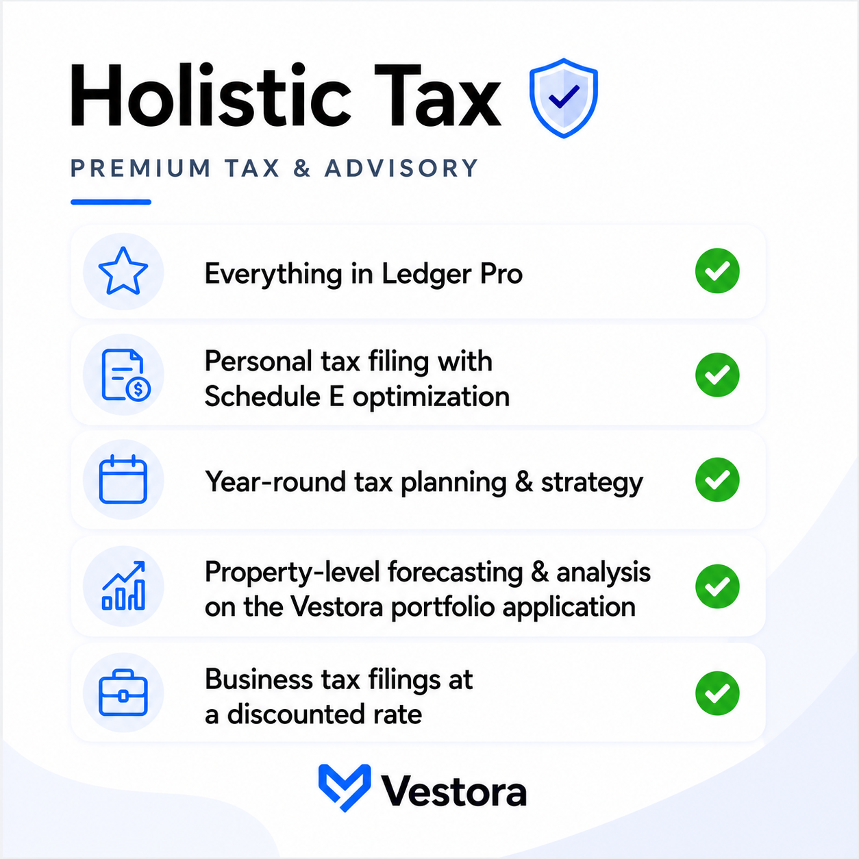 Ideal for investors seeking comprehensive, year-round tax strategy and advisory, combining personal and business tax optimization with portfolio-level insights to maximize long-term returns.